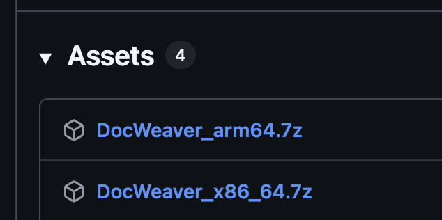 - Open the DocWeaver GitHub Release page, find the required version (