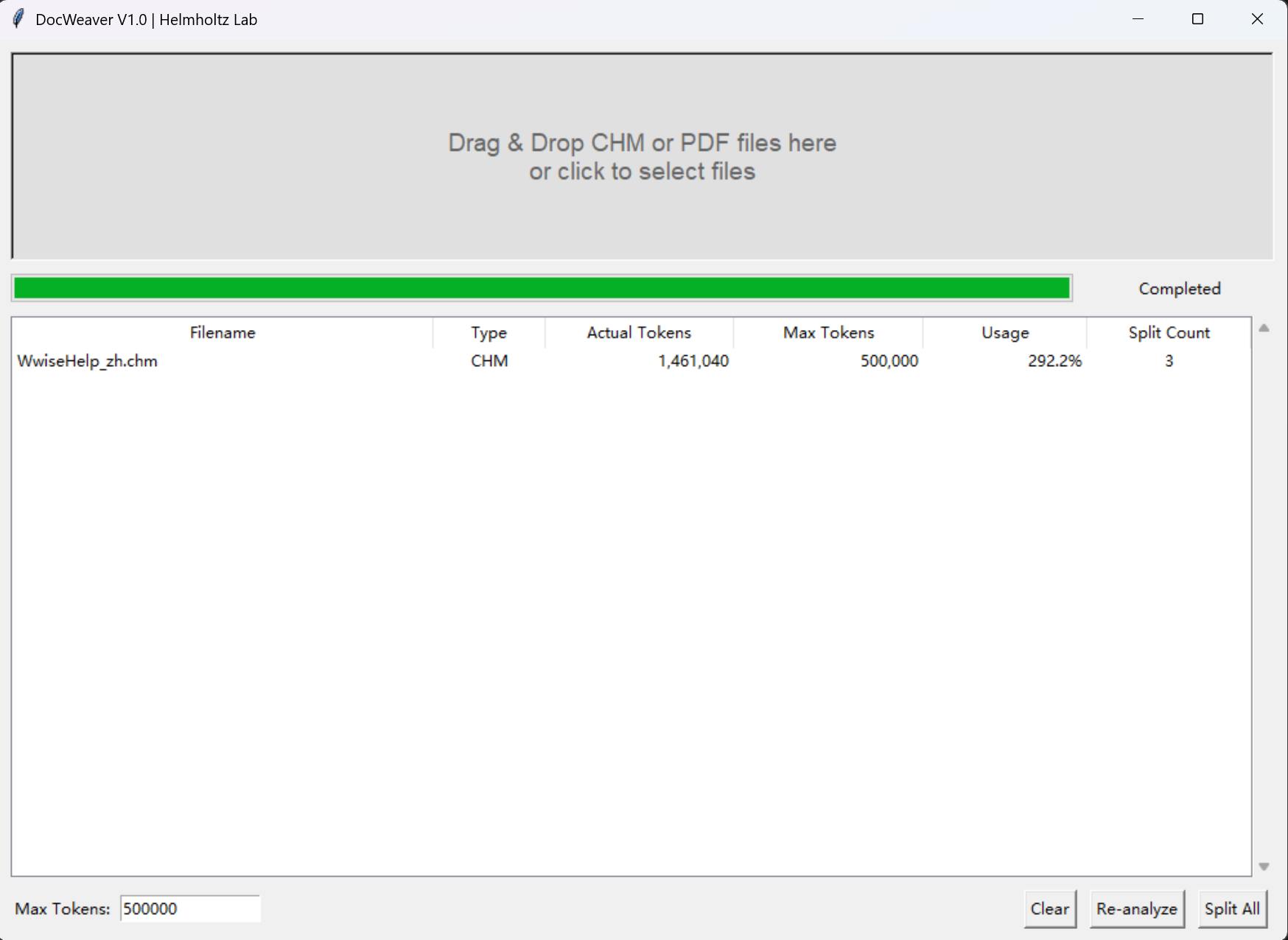 Drag & Droparea of the tool. - Wait a moment and check the estimated number of split files.
