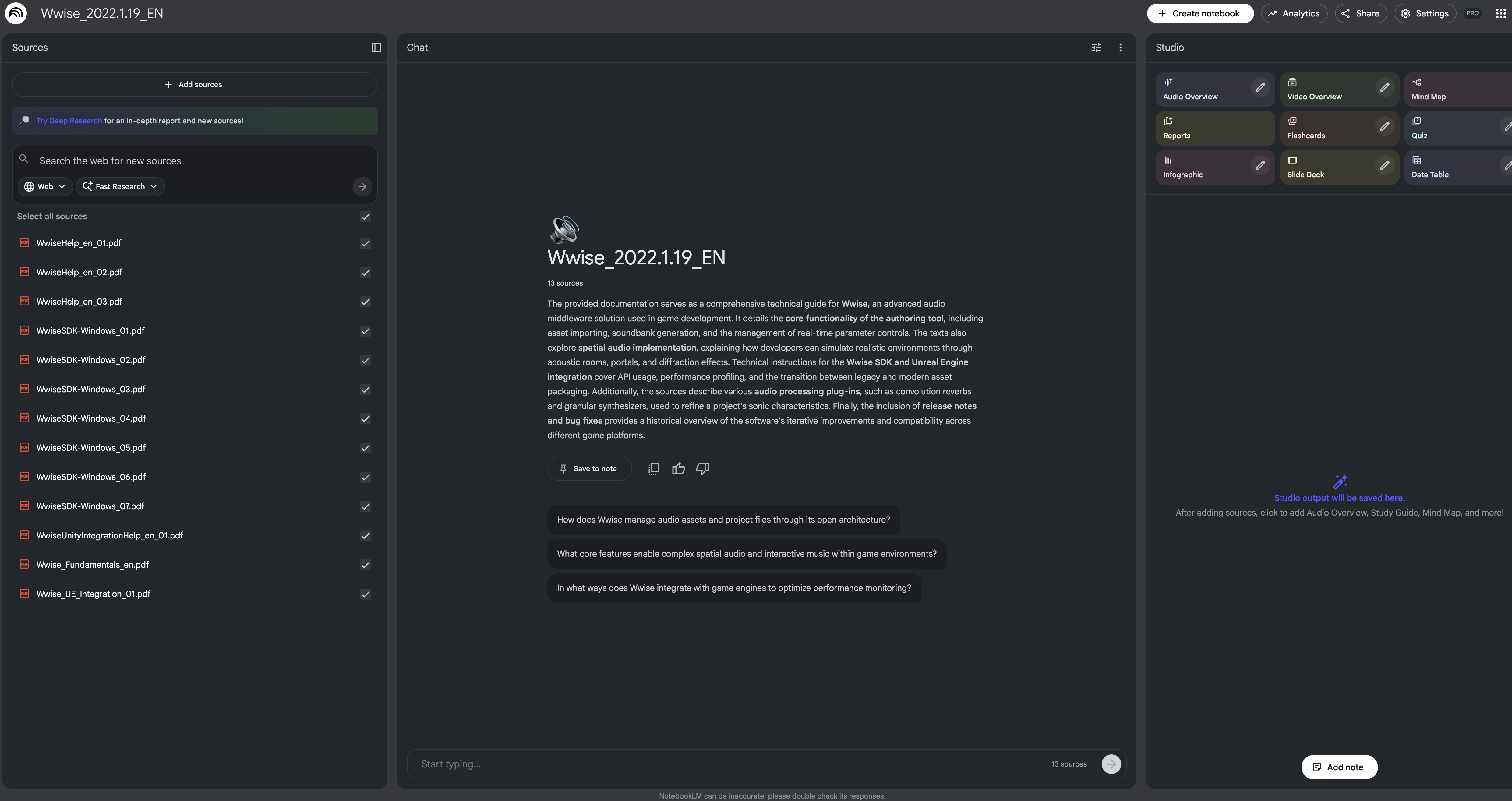 Below, through several practical problems in Wwise development, I will demonstrate the answer quality of NotebookLM.
