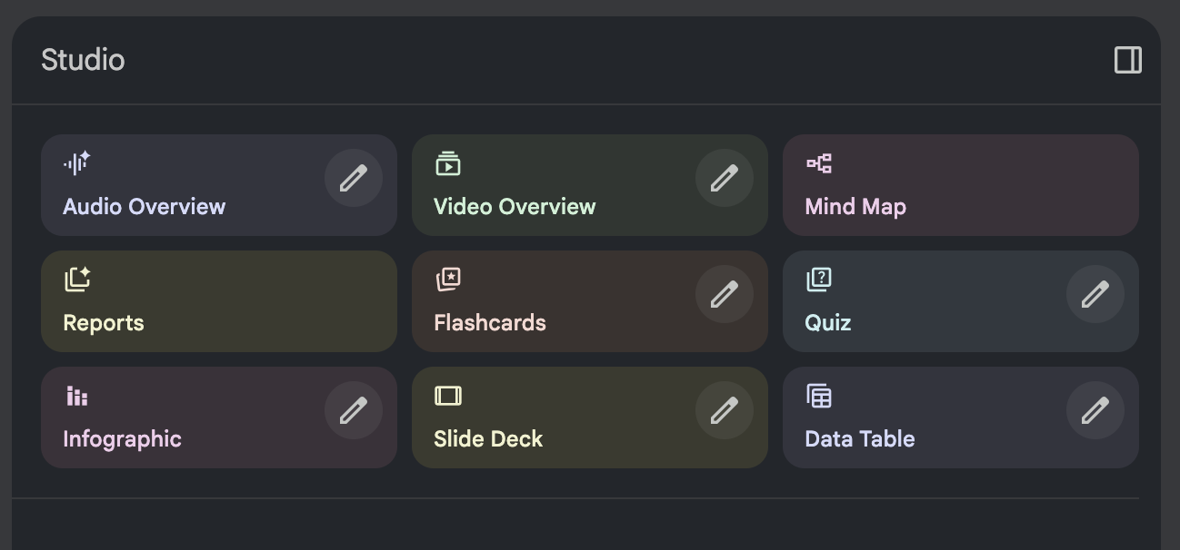 NotebookLM provides rich content generation functions, which can convert notebooks into: